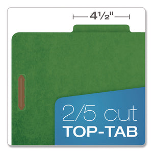 Colored Pressboard Top Tab Classification Folders, 2.5" Expansion, 2 Dividers, 6 Fasteners, Letter Size, Dark Green, 10/Box