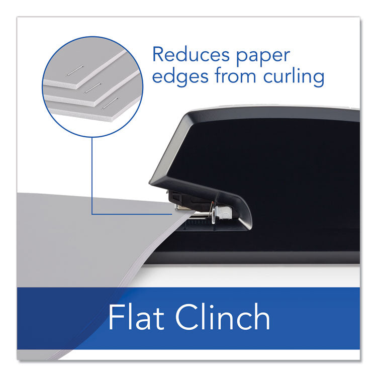 - Flat clinch tightly flattens the staple reducing papers from curling up at the edges.