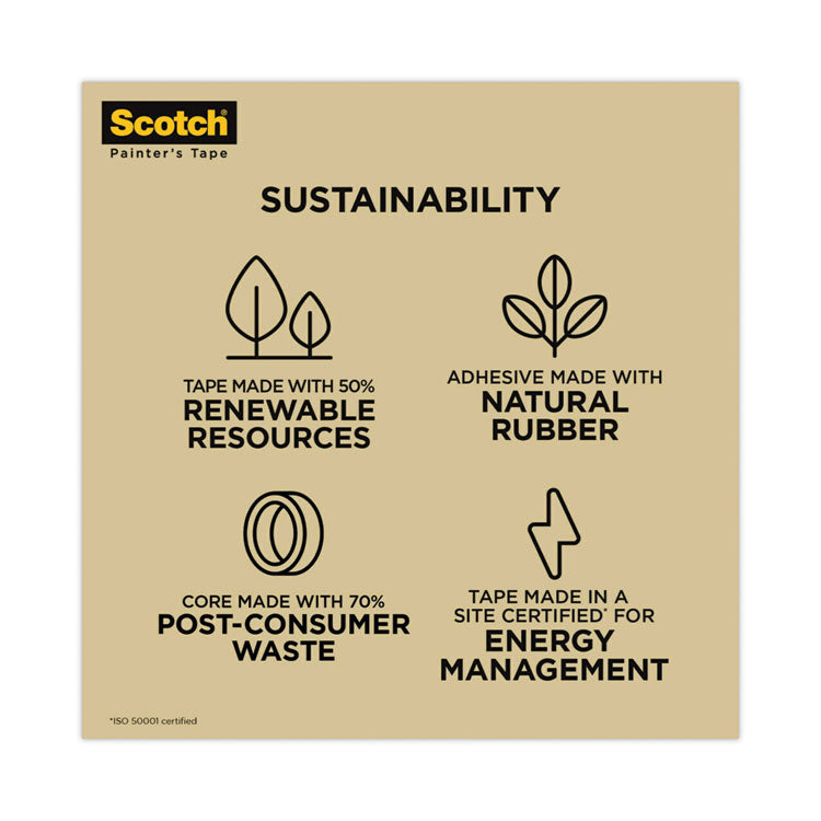 Scotch® Contractor Grade Masking Tape is a general purpose masking tape designed for use on non-damageable surfaces. Use on vinyl, carpet, metal, and plastic for the protection you need to get the job done. This masking tape holds to surfaces for up to three days and then removes easily without leaving any sticky residue behind. For great paint results make sure the surface is clean, dry and dust-free so that the tape sticks properly. Next, apply the tape onto the surface while pressing down firmly as you go. And lastly, let the tape set for about 30 to 60 minutes before painting. Wait until the paint is dry to the touch before removing the tape. Lift it up by slowly pulling it back on itself, then removing at a 45-degree angle.