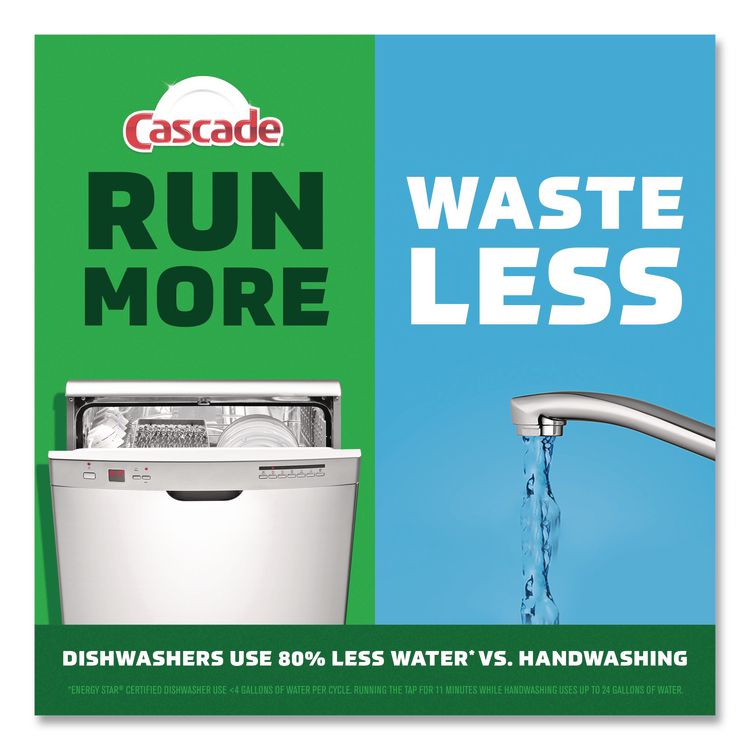 - Save up to 15 gallons of water per dishwasher load when you skip the pre-wash and run your dishwasher with Cascade ActionPacs.