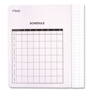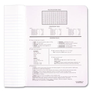 Durable cover with nameplate that allows you to name or number each notebook. Secure sewn binding. Class schedule grid on inside front cover. Multiplication table, conversion table and grammar rules on inside back cover. Black marble.