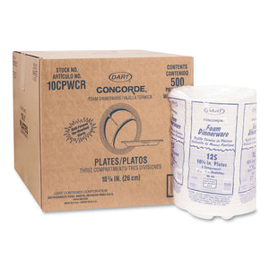 Concorde Foam Plate, 3-Compartment Plate, 10.25" dia, White, 125/Pack, 4 Packs/Carton