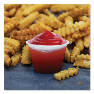 Conex Complements portion containers are perfect for any purpose. Serve everything from salad dressings and toppings to signature sauces and sides! Dish up hot or cold condiments, like cool ranch dressing or warm maple syrup. Pair with the compatible leak-resistant lid (sold separately) to securely transport food delivery and takeout. With these, you avoid soggy meals and sloppy messes with sleek style. They can even be used to distribute medicine in medical facilities. The uses for these crack-resistant containers are truly endless! Made of recyclable PP; check locally, may not be recycled in your area.