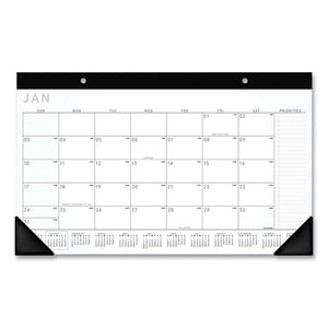 Contemporary Monthly Desk Pad, 18 x 11, White Sheets, Black Binding/Corners,12-Month (Jan to Dec): 2025