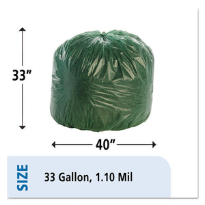 Controlled Life-Cycle Plastic Trash Bags, 33 Gal, 1.1 Mil, 33" X 40", Green, 40/box