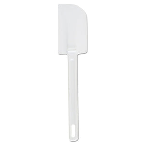 Food scraper and spatula features a true rubber blade molded directly onto the handle. This construction prevents bacteria and dirt build-up, providing a safer kitchen experience. The rubber spatula is entirely white and stain resistant. Each spatula is safe for use with commercial dishwashers. The seamless construction allows for a permanent bond.
