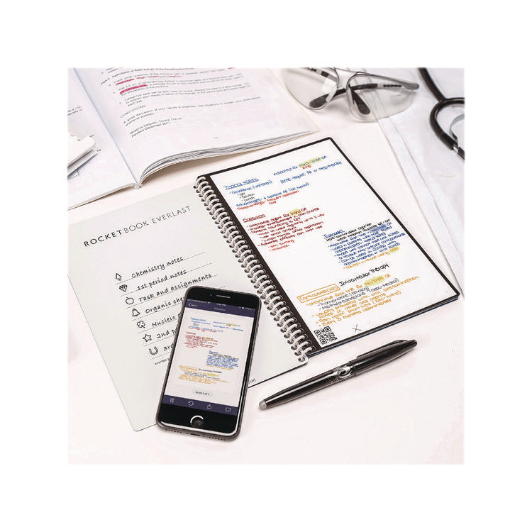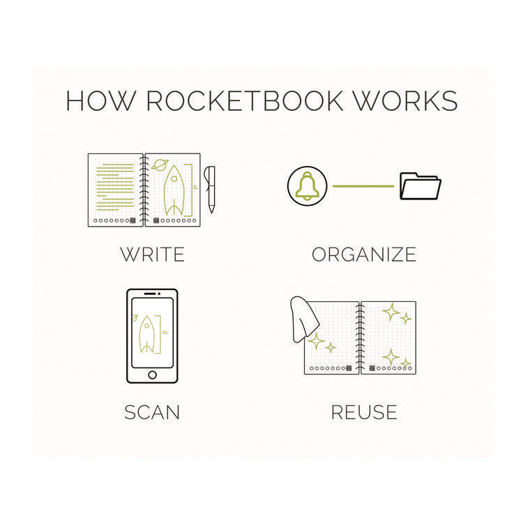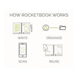 Provides a classic pen and paper experience, yet is built for the digital age. Although it feels like a traditional notebook, the Rocketbook Core is endlessly reusable and connected to all of your favorite Cloud services. When you write using any pen from the Pilot® Frixion line, your writing sticks to Rocketbook Core pages like regular paper. But add a drop of water and the notebook erases like magic.