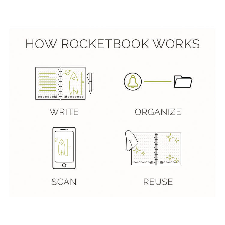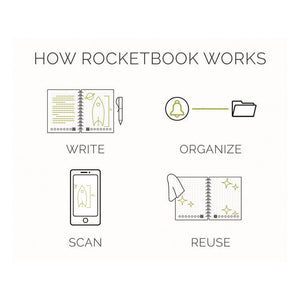 Provides a classic pen and paper experience, yet is built for the digital age. Although it feels like a traditional notebook, the Rocketbook Core is endlessly reusable and connected to all of your favorite Cloud services. When you write using any pen from the Pilot® Frixion line, your writing sticks to Rocketbook Core pages like regular paper. But add a drop of water and the notebook erases like magic.