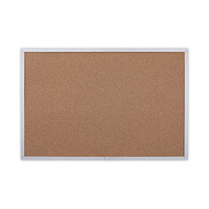 Cork Bulletin Board, 36" x 24", Tan Surface, Satin Aluminum Frame