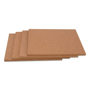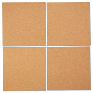 Cork Tile Panels, Classic Synthetic Cork Surface, 12" x 0.38" x 12", Brown, 4/Pack