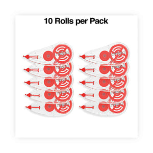Correction Tape Dispenser, Non-Refillable, Transparent Red Applicator, 0.2" x 315", 10/Pack