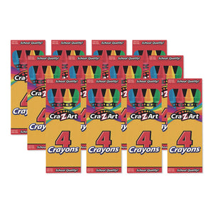 Crayons, 4 Assorted Colors, 4/Box, 12 Boxes/Pack