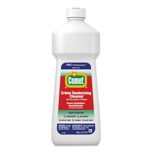 Deodorizing Cleanser with the power of bleach is a cream with a soft abrasive that scours and functions as a stainless steel cleaner and porcelain surface cleaner. It clings to vertical and hard-to-reach surfaces, like toilet bowls. Use in employee and customer restrooms to clean toilet bowls, urinals, sinks/vanities, wall tiles and chrome. This Comet multi-surface cleaner also works on stainless steel surfaces, stove tops and ranges, and the insides and outsides of plastic containers.
