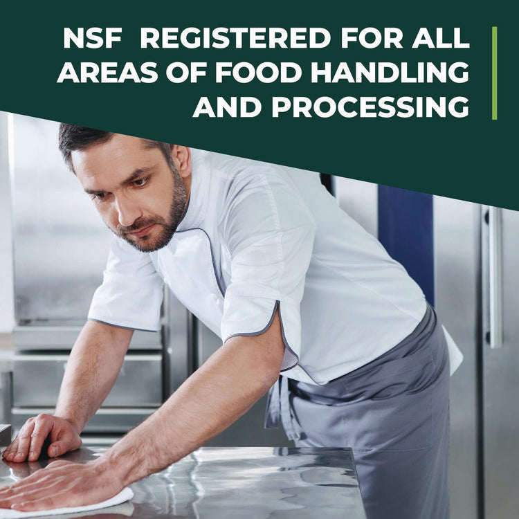 - NSF registered A1, A2, A4, A8, B1, C1 for use as a general cleaner in all food processing facility areas including cooking and smoking equipment, floors, walls, and utensils.
