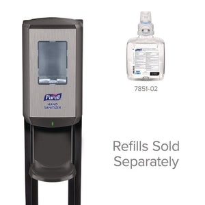 Show you care by providing PURELL® products where they're needed most. The PURELL® CS8 Dispenser Floor Stand helps promote your focus on well-being with a freestanding design that can be placed nearly anywhere in your building. It's an ideal solution for high-traffic areas, including waiting rooms and hallways. The included PURELL® CS8 Automatic Dispenser provides an easy and convenient way to access America's #1 hand sanitizer brand. Place the floor stand wherever guests, customers, and patients need hand sanitizer and make hand hygiene available anywhere. The low-profile baseplate is designed to maximize stability while being lightweight, allowing you to quickly move it around and clean surrounding areas. The sturdy silver baseplate also hides dirt and always looks good. The included touch-free CS8 dispenser has a large sight window to monitor product levels with one look. It uses PURELL® CS8 Hand Sanitizer 1,200 mL refills (7851-02 and 7899-02) that are sold separately. Each refill features Energy-on-the-Refill technology, which helps simplify maintenance and decrease labor by eliminating battery replacements. Refills are factory sealed to help eliminate the risk of contamination.