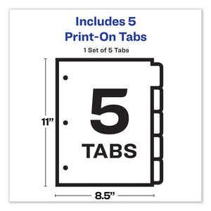 Customizable Print-On Dividers, 3-Hole Punched, 5-Tab, 11 x 8.5, White, 1 Set