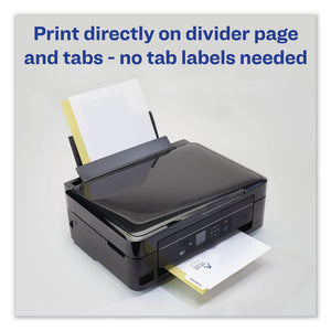 Create professional proposals and projects quickly and easily with our Print-On™ Dividers with white or ivory tabs. Print directly onto dividers and tabs with no labels to apply. You can print in either landscape or portrait format, making the dividers ideal for PowerPoint® presentations. It's easy to produce rich text and vibrant graphics with templates from Avery® Design & Print. Your presentations will be picture-perfect with these customizable dividers. For laser, color laser and inkjet printers.