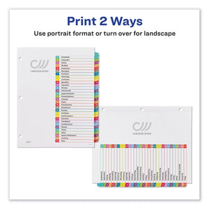 Organized documentation makes a business run like a well-oiled machine. These Ready Index Table of Contents Dividers help you stay organized so you can locate documents quickly and efficiently. They feature preprinted multicolor tabs that can be displayed in either landscape or portrait format. Using free templates from Avery Design & Print you can customize the included table of contents page and print in minutes. Organization and efficiency-makes life better for your business. For laser and inkjet printers.