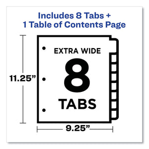 Customizable TOC Ready Index Multicolor Tab Dividers, Extra Wide Tabs, 8-Tab, 1 to 8, 11 x 9.25, White, 1 Set
