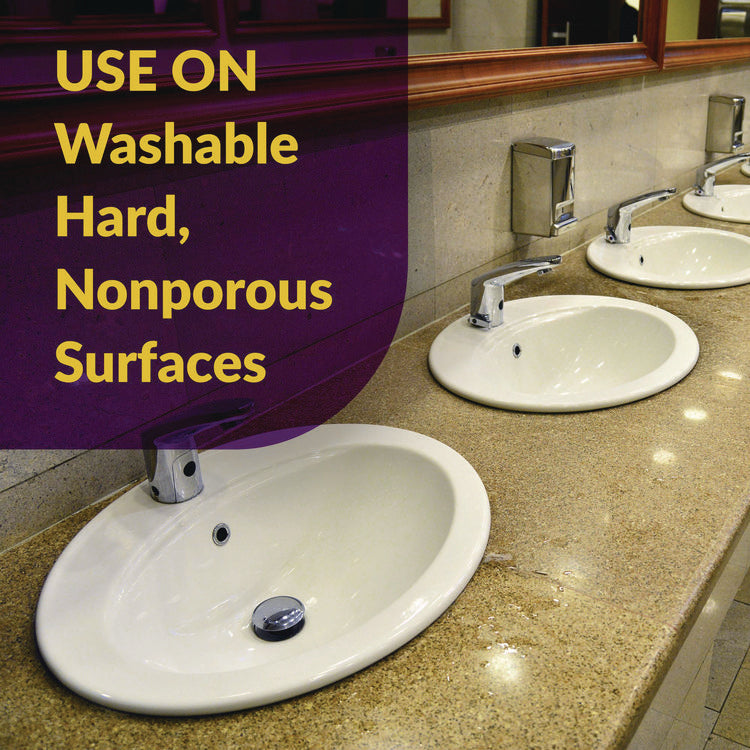 View Details- Disinfectant for use on sinks, urinals, toilet bowls, showers, tubs, bathroom fixtures, doorknobs, counters, floors, and desks.