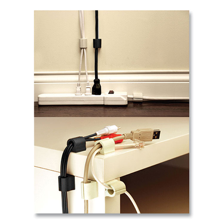 Feed loose cords across vertical and horizontal flat surfaces, accommodating corners, edges and curves along the way. Simply peel and stick to mount, they're ideal for audio/video and telecommunication cords as well as chargers, power cables and holiday lights. Soft opening slit makes it easy to insert and remove cords.