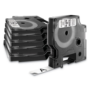 D1 Standard Labels, 0.5" x 23 ft, Black Print on White Tape, 6/Pack