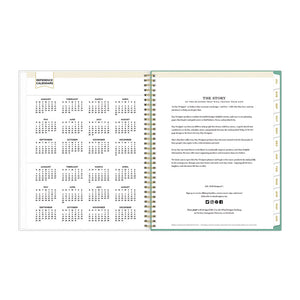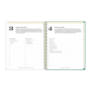 - Weekly calendar view per two-page spread contains space for daily schedule, to-do list, notes section and an inspirational quote.