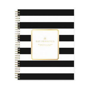 Day Designer Daily/Monthly Frosted Planner, Rugby Stripe Artwork, 10 x 8, Black/White Cover, 12-Month (July-June): 2025-2026