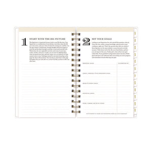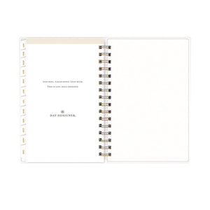 Design your life with Day Designer, the simple and easy system created to help anyone find balance while they boost their productivity. An introductory letter from Whitney English and special worksheets designed for identifying and fulfilling your personal goals get you started. In the back of the book, reference calendars, a yearly goal checklist, holiday lists and ample notes space help you keep your momentum. Daily planner section features one-day per page views Monday through Friday and two-day per page views for Saturday and Sunday, all with a vertical appointment format, to-do lists, a ruled notes area, space for your top three priorities and an inspirational quote. Two-page per month spreads feature ruled daily blocks, holidays listed, reference calendars and a Notes & To Do checklist. Durable, coated monthly tabs allow for easy navigation. Six past-year monthly views simplify yearly transitions. Flexible front and back covers feature an attractive navy stripe design, and the strong twin-wire binding ensures easy page turning. Thick, premium quality pages provide superior ink-bleed resistance.