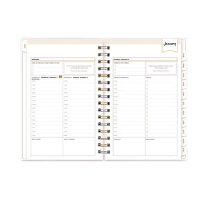 View Details- One-day per page views Monday through Friday and two-day per page views for Saturday and Sunday-all with a vertical appointment format, to-do lists, a ruled notes area, space for your top three priorities and an inspirational quote.