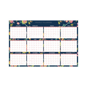 Day Designer Peyton Laminated Erasable Wall Calendar, Floral Artwork, 36 x 24, White/Navy Sheets, 12-Month (Jan to Dec): 2025