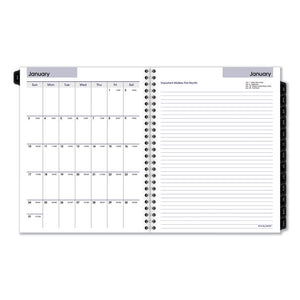- Monthly: tabbed, full months with unruled blocks on left page, notes space on right.