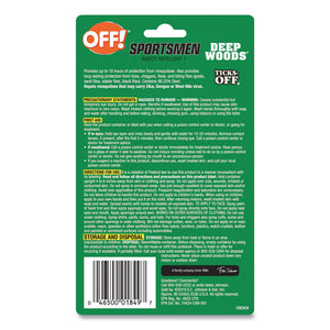 OFF! Sportsmen Deep Woods Repellent Spritz provides strong protection with 98.25% DEET formula. Repels biting insects for up to 10 hours. Non-greasy, odorless formula. Spray repels mosquitoes, ticks, chiggers, fleas, stable flies, black flies, gnats and Sandflies. Pump spray allows for easy application to skin, hair and clothing while keeping hands repellent-free. Small size convenient for keeping in a backpack or pocket.