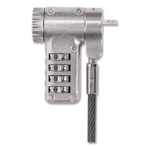 Compatible with essentially any lock slot, including oversized wedge slots, the DEFCOM Ultimate Universal Serialized Combination Lock will secure your devices with freedom from keys. Whether your team is working from home, the airport lounge, or a coffee shop, laptop locks are a must-have if you want to secure your equipment and make sure no one gets a hold of valuable or private information. Easy-to-use and easy-to-carry with their slim size, making them great for slim devices. The lock attaches to most major lock slot designs like Kensington® Nano, Kensington® K-Slot, even the oversized Noble wedge-shaped lock slots, ensuring those laptops, docking stations, or monitors stay right where they need to be. The universal fit paired with the serialized combination lock means there'll be no more worrying about losing interchangeable heads or keys. Plus, its four-digit combo lock provides up to 10,000 different codes, even further safeguarding your equipment from attempted combination guesses. The lock head can be rotated a full 360°, which helps with usability, while its six-and-a-half-foot cable of galvanized and sleeved steel makes it cut-proof and rust-resistant, yet flexible for simple installation. Ensure your expensive equipment stays safe.