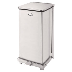 Rubbermaid Commercial Defenders Step-On Trash Can with Plastic Liner complies with OSHA standards on blood borne pathogens for the safe containment of infectious waste. These step-on trash cans feature a foot pedal for hands-free operation. Trash can is finished in powder-coat and is State Fire Marshal listed.
