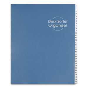 Deluxe Expandable Indexed Desk File/Sorter, 31 Dividers, Date Index, Letter Size, Dark Blue Cover