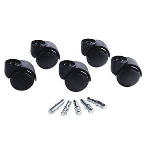 Contemporary design, strength and performance make these replacement casters an excellent choice for office and home furnishings. Each caster can be used with wood, metal and tubular metal chairs, various pieces of furniture and other equipment. All casters carry the manufacturer's guarantee against defects in material and workmanship. To ensure proper support and safe rolling, neck must fit 1.5" diameter chair base so that base and caster fit together as a solid unit. Choose soft wheel casters for use on chair mats and hard floors. Choose hard wheel casters for carpeting.