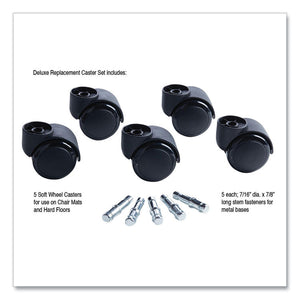 Deluxe Futura Flush-Mount Soft-Wheel Casters, 0.44" x 0.88" Type B Stems, 2.19" Polyurethane Wheels, Matte Black, 5/Set