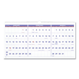 Deluxe Three-Month Reference Wall Calendar, Horizontal Orientation, 24 x 12, White Sheets, 15-Month: Dec 2024 to Feb 2026