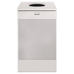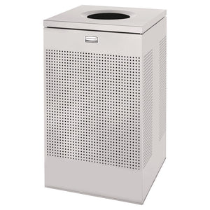 Offers functional litter control in an elegant design. The garbage can has an open top with a vinyl trimmed disposal opening. The trash can is made of fire-safe steel. Its wall-hugging design is ideal for areas where looks are important and space is limited. The lift-off trash can body makes it easier to empty and has a rigid plastic liner that will not leak.