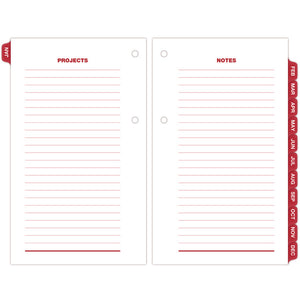 - Monthly tabs for easy referencing of dates; lined for projects, to-do's and reminders.