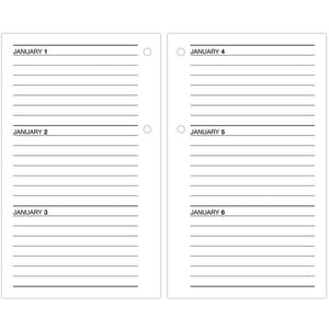 | Calendar Spread Format | One Day per Two-Page Spread |