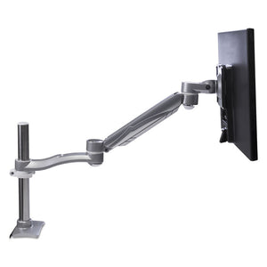 Desk-Mounted Flat Panel Monitor Arm, For 22" Monitors, 360 Deg Rotation, 180 Deg Tilt, 360 Deg Pan, Silver, Supports 40 Lb