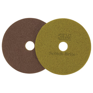 These diamond-coated floor pads clean and condition worn and dull floors. They are useful on a variety of floors including marble, terrazzo, slate, and polished concrete. They create a low to medium gloss.