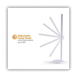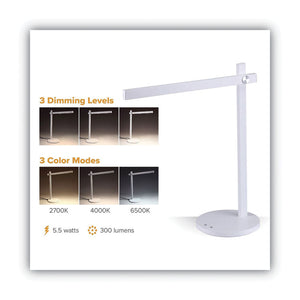 This lamp is as modern as they come. Coming in a simple white color to uphold your sleek office aesthetic, this Touch-Activated LED lamp is topped off with a matte metal finish. It's simple in design as it features a geometric shape with a round base and slim lamp head and arm. The light itself is 4 watts and simulates the appearance of natural daylight to give you a break during your busy day of work. Need to relax, too? This adjustable lamp allows you to choose from three color temperatures depending on the task at hand. Read, relax or study all with this desk light by your side. Uses cost-efficient and LED bulbs that use 85% less energy than incandescent lamps and last up to 50,000 hours.