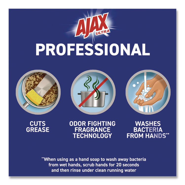 Ajax Ultra Triple Action Dish Liquid provides a pleasant and powerful cleaning experience while leaving your dishes sparkling clean. This product cuts grease to get dishes clean and spotless. This product also washes away bacteria on hands (when used as a hand soap, to wash away dirt and bacteria from hands, wash them for 20 seconds under clean running water) and fights odor on dishes. This dishwashing liquid is Kosher and phosphate-free.