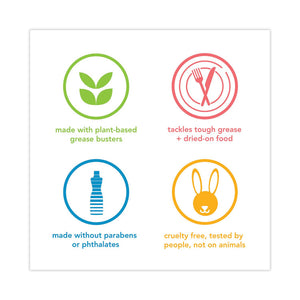 Tackle unpleasant grease and stubborn, stuck-on food with the power of a plant-based dishwashing soap. Formula is made without parabens or phthalates. Contoured shape for easy grip-ability. Streamlined body plus pump uses 35% less plastic than previous packaging. Pleasant scent leaves dishes smelling great. Cruelty free formula. Tested by people, not on animals. Proudly doing business with a purpose.