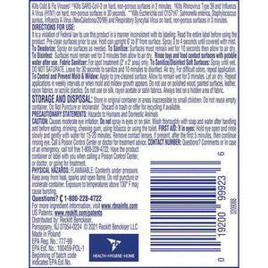 View Details- Kills 99.9% of viruses and bacteria, including cold and flu viruses, Salmonella, E. Coli, MRSA, RSV, Staph, and Strep when used as directed.