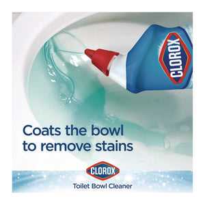 Clorox® Toilet Bowl Cleaner with Bleach kills 99.9% of germs, including COVID-19 virus (SARS-CoV-2) when used as directed on hard, nonporous surfaces. Whitens and brightens your toilet bowl with the trusted power of Clorox® Bleach. This powerful bleach cleans your toilet bowl while it destroys tough stains, disinfects and eliminates odors with a refreshing scent. The only toilet bowl cleaner with Clorox® Bleach, it cleans and leaves toilets sparkling and bright. Deodorizes as it whitens and brightens. Uniquely angled, this dispensing nozzle makes it easy to tackle hard-to-reach areas under the bowl rim with a simple squeeze of the bottle. Flush toilet. Apply six ounces under and around the rim. Scrub entire bowl. Let sit for five minutes. Flush toilet. Disinfect and get your toilet squeaky clean with Clorox® Toilet Bowl Cleaner with Bleach.