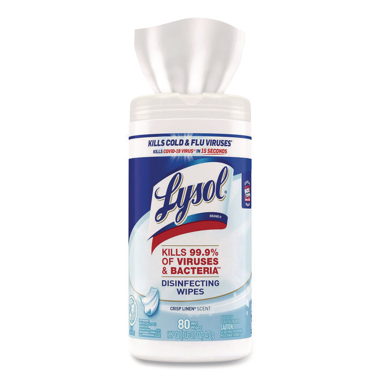 Disinfecting Wipes, 1-Ply, 7 x 7.25, Crisp Linen, White, 80 Wipes/Canister